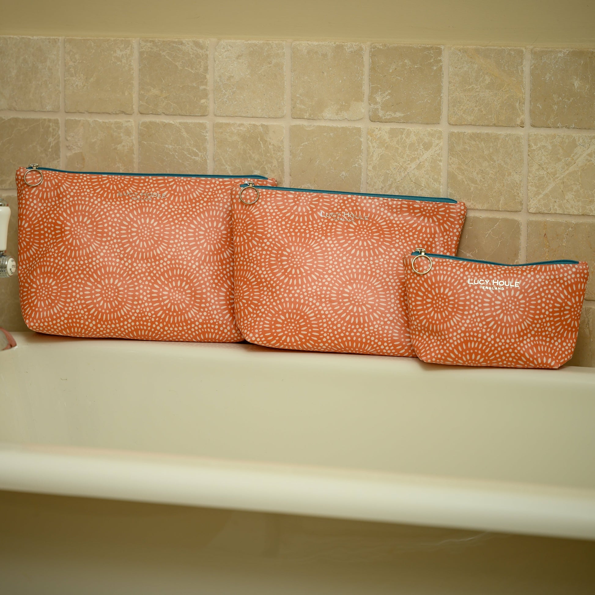 The large washbag has two interior pockets and will hold all your bathroom essentials. The medium washbag is ideal for weekends away and overnight stays. The small washbag will hold all your favourite cosmetics when you are on the go, ready for quick tidy ups so you will always look your fabulous self!