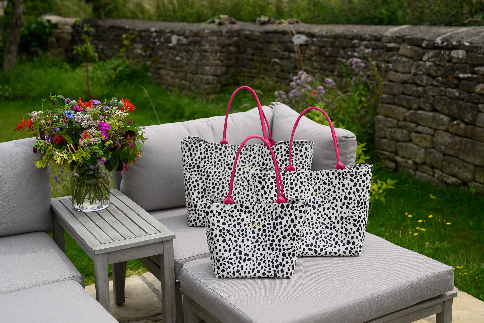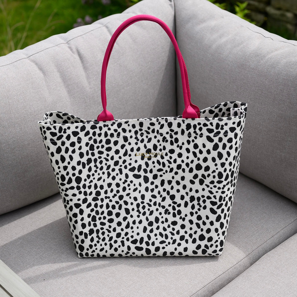 Dalmatian Medium Tote Bag with Hot Pink Handles