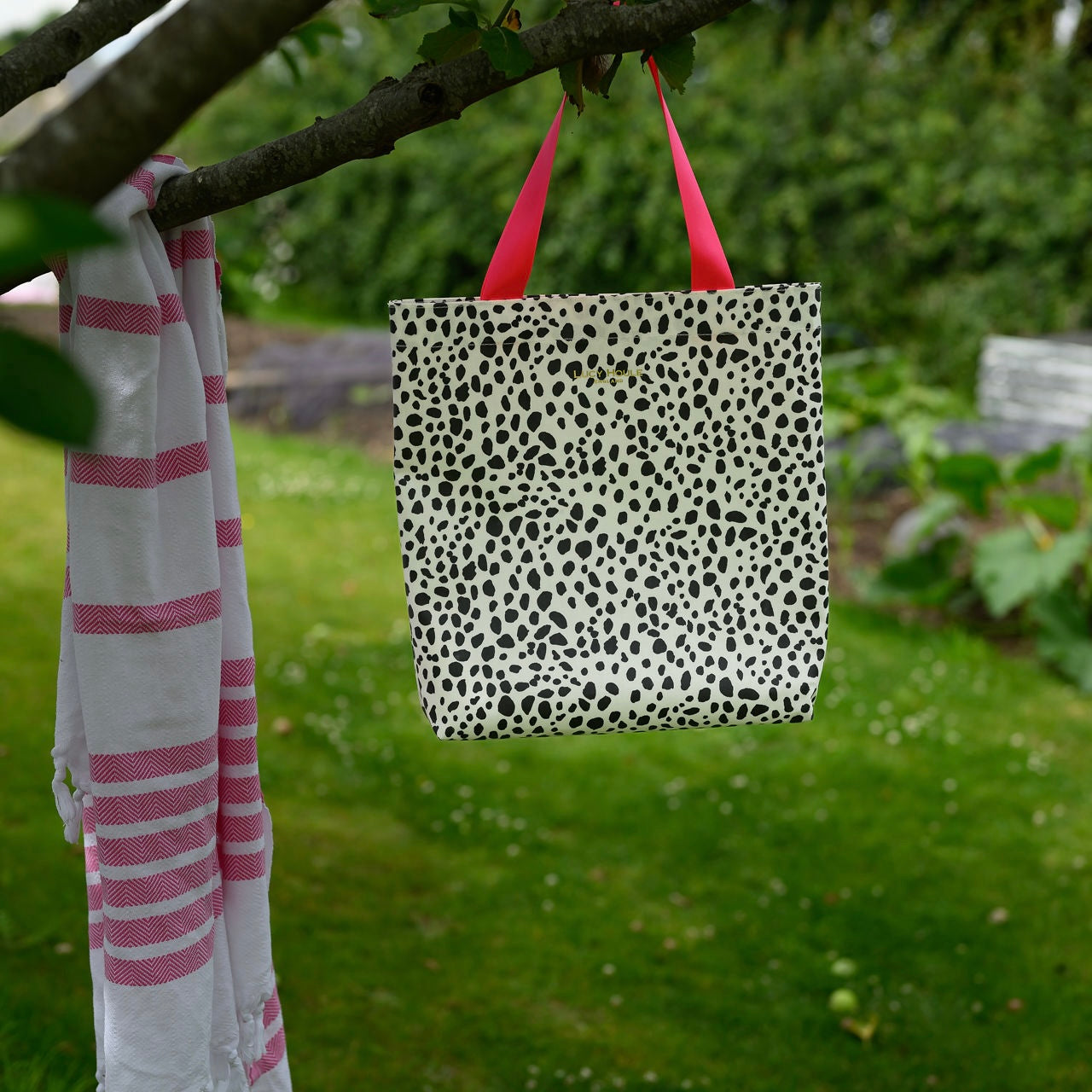 Our Dalmatian Shopper will be your favourite addition to your outfit, no matter what time of the year! It is ideal for a trip to town or out and about in the country! Made by hand in wipe clean oilcloth.