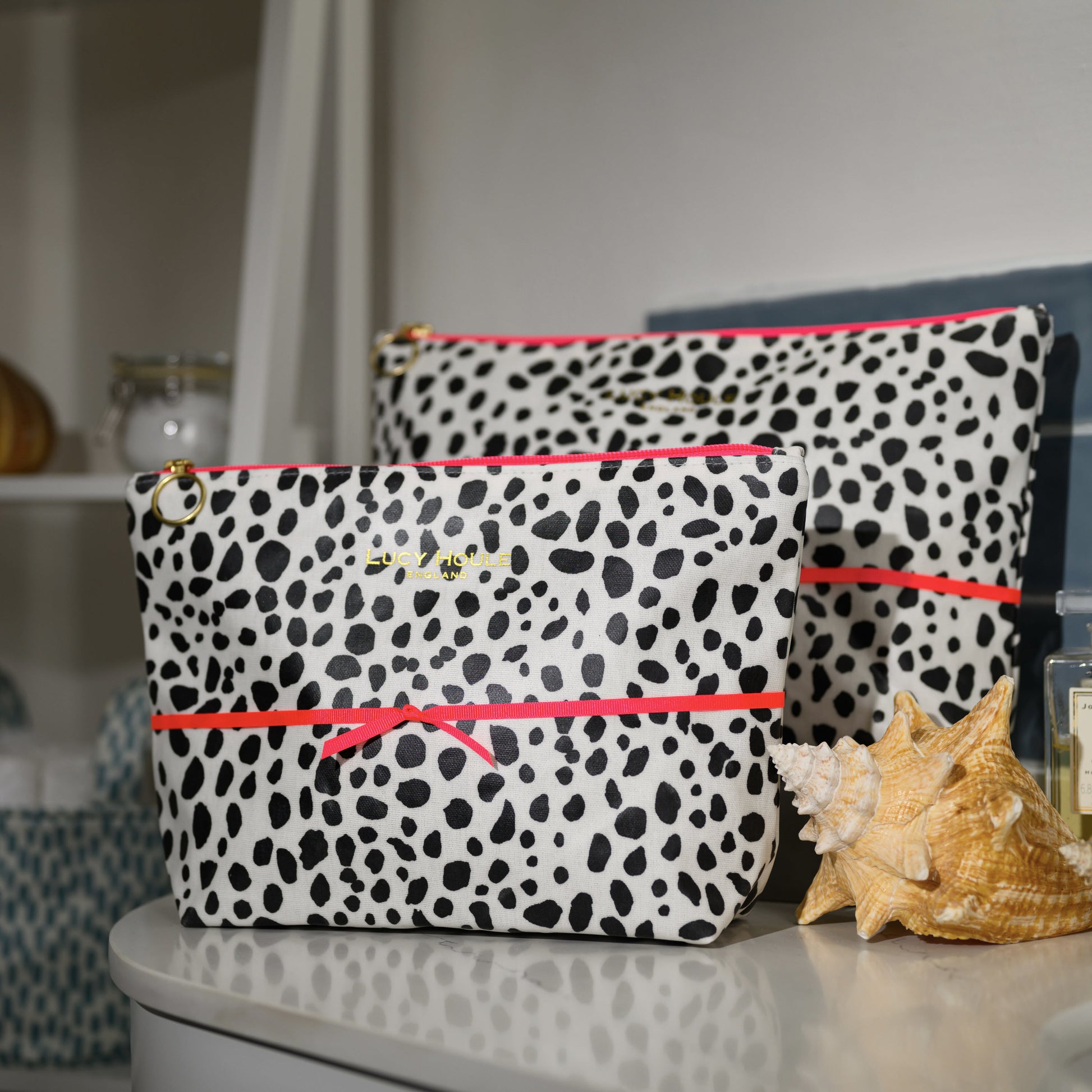 Dalmatian Wash Bag with Neon Pink Zip