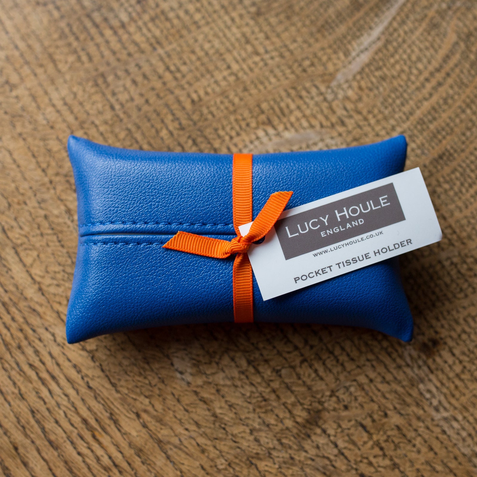 Faux Leather Cobalt Blue Pocket Tissue Holder Orange