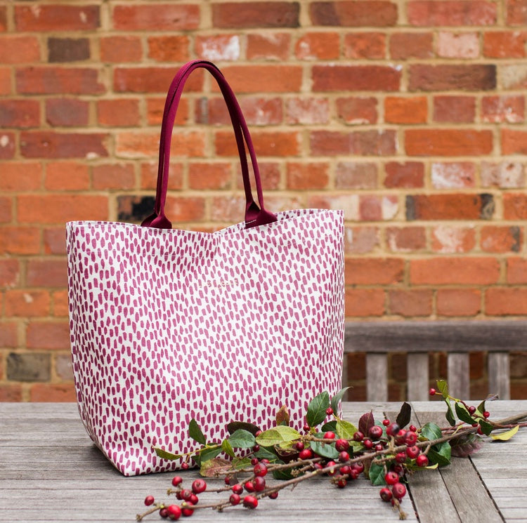 The tote bag has an oilcloth lining with a single pocket, ideal for a mobile phone, keys and accessories and has a removable oilcloth covered base.