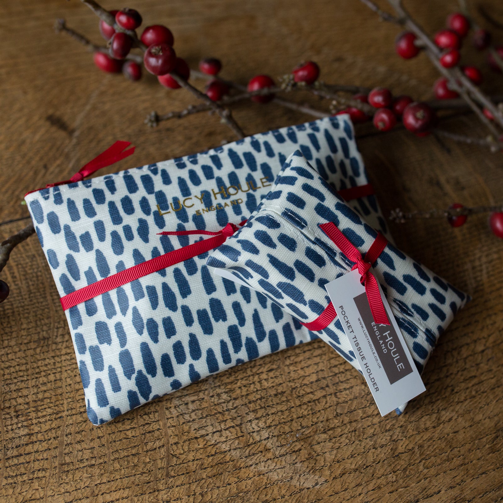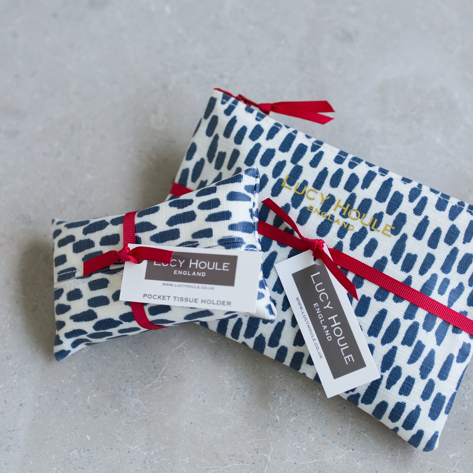 Handmade in easy clean oilcloth and is refillable. Contains 10 pocket tissues and hand tied with ribbon. Approx Size 12 x 8 x 2.5 cm.