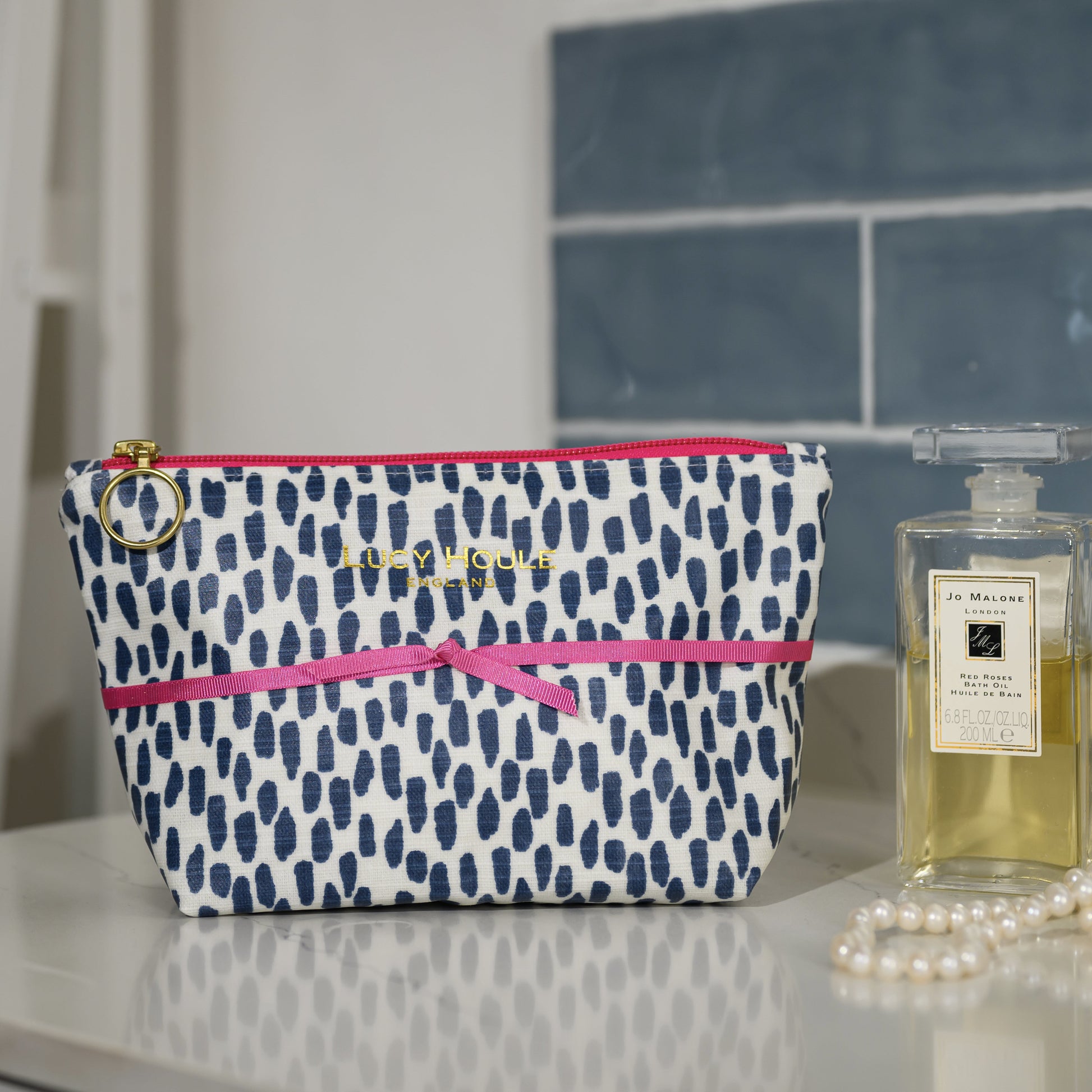 Navy Cobblestone Lined Make-Up Bag with Pink Zip