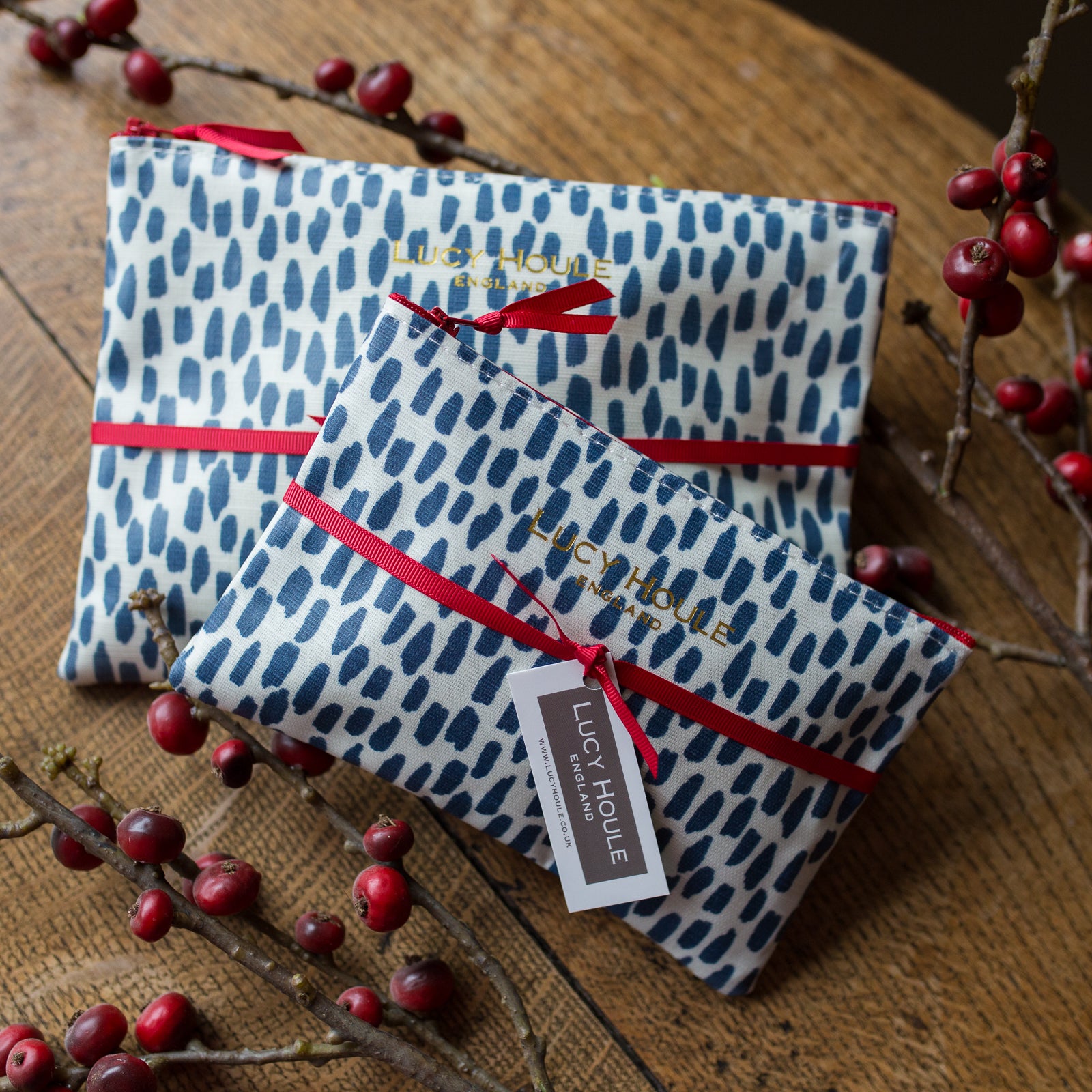 Brighten up your day with these make-up bags! They are a great size to keep in your handbag. Made by hand in easy clean oilcloth and hand tied with ribbon.