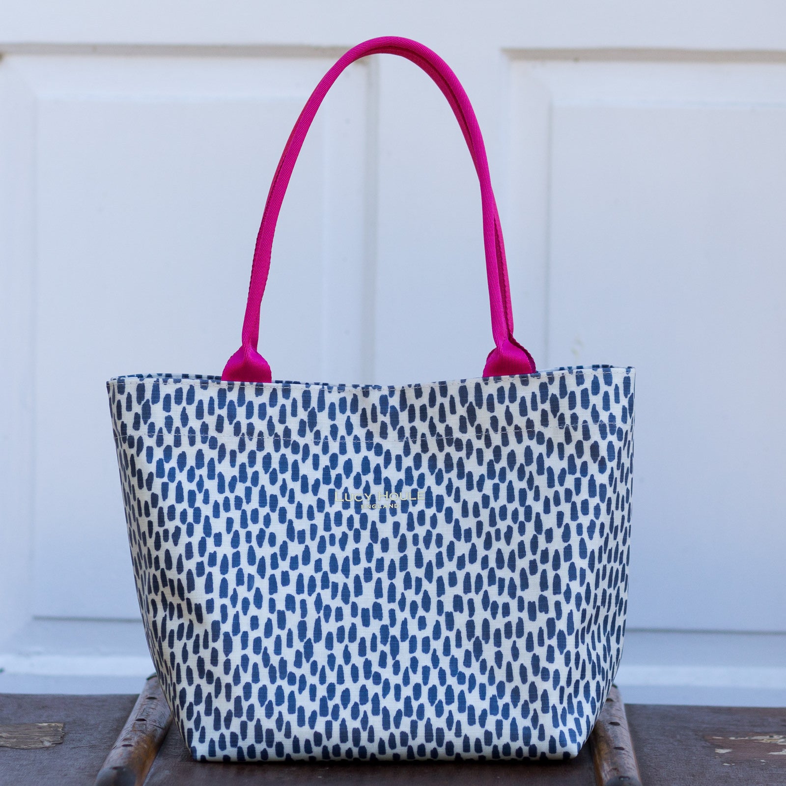 Navy Cobblestone Small Tote Bag with Pink Handles