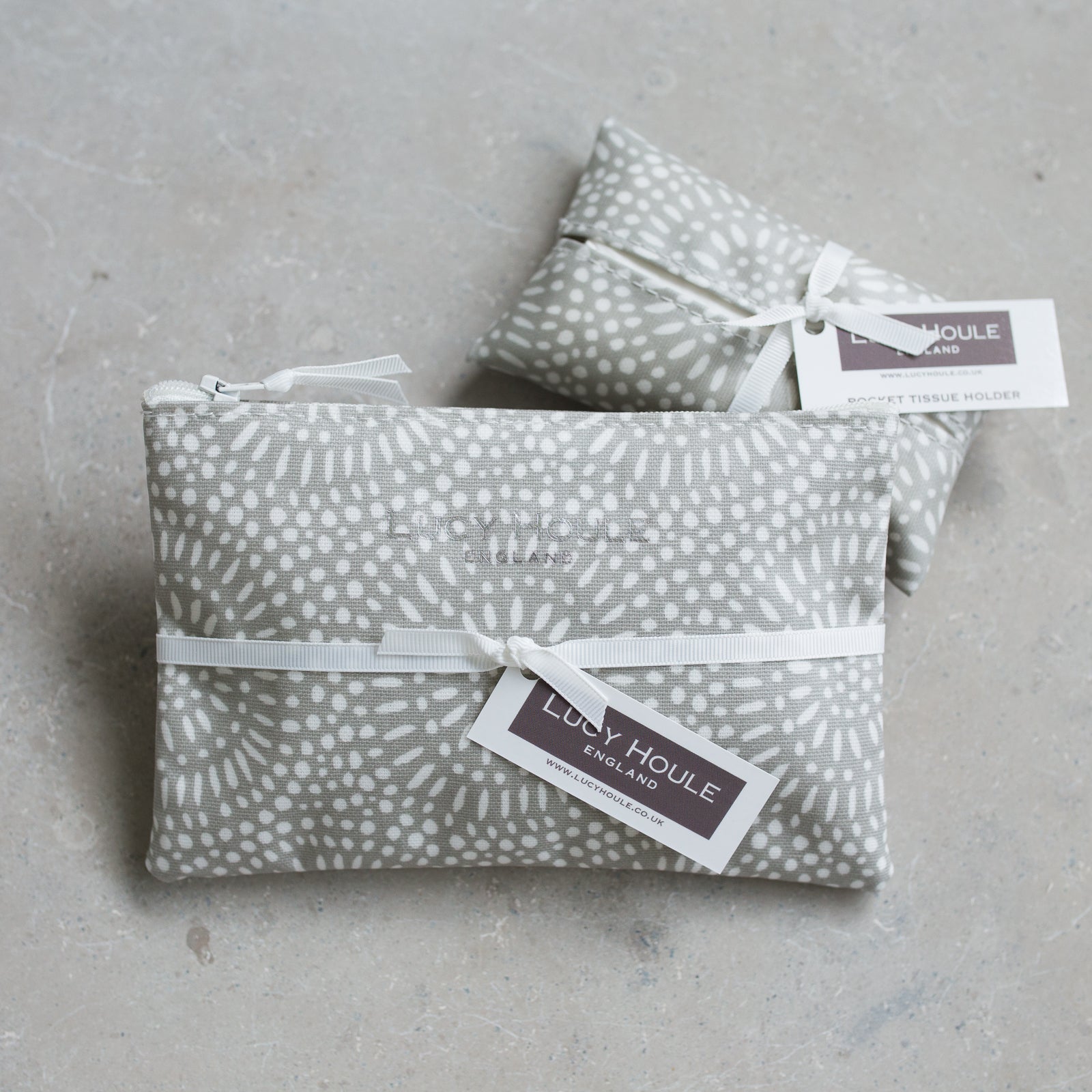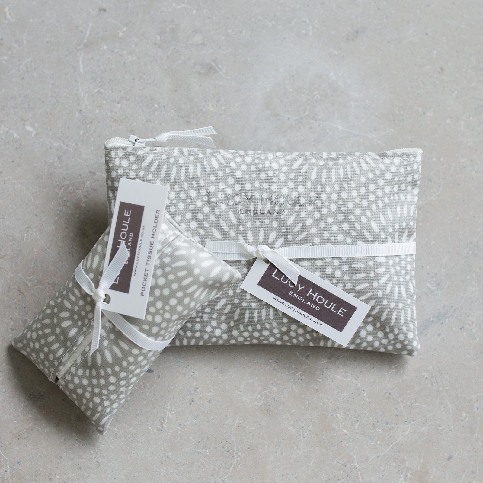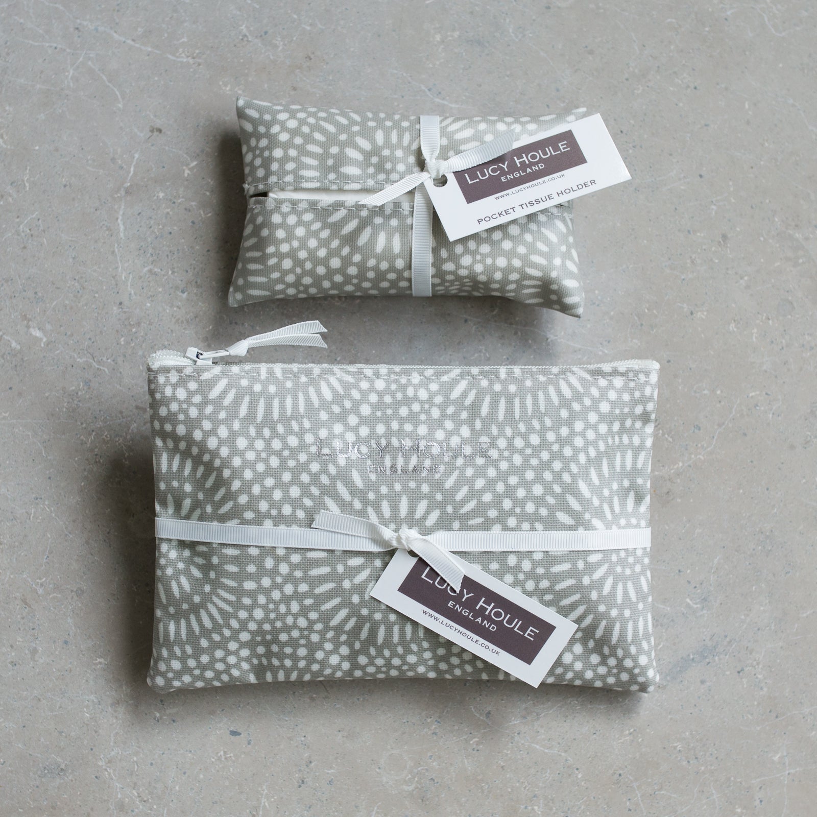 Our handbag set with either a medium or Small Make-up bag and pocket tissue holder is an essential in your tote bag. Treat yourself or a friend to this elegant gift to brighten up their day.