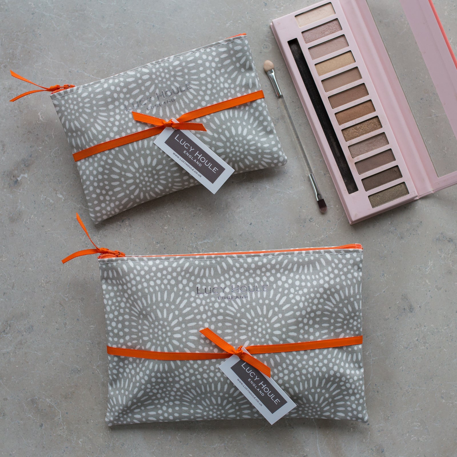 Brighten up your day with these make-up bags! They are a great size to keep in your handbag. Made by hand in easy clean oilcloth and hand tied with ribbon.